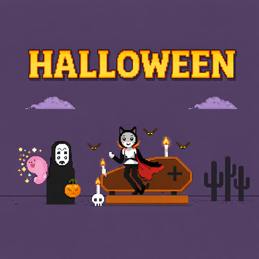 The main character is No-Face from the cartoon “Spirited Away”, a mysterious spirit known for its silent presence and haunting appearance. In this version, No-Face runs endlessly through a dark, eerie world, holding a glowing pumpkin that lights the way ahead. Its calm yet unsettling aura perfectly matches the Halloween theme, turning each run into a spooky but captivating adventure.